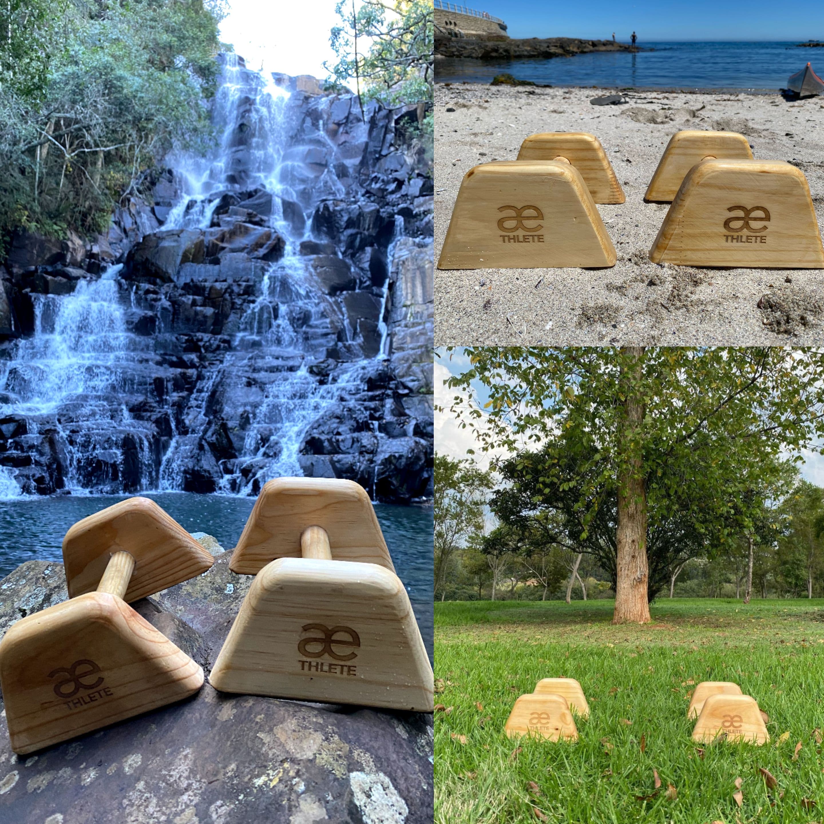 Our wooden parallettes integrate well into calisthenics and various kinds of yoga and bodyweight training. It is a versatile, light-weight addition to your gear to help transform anywhere into your training space.